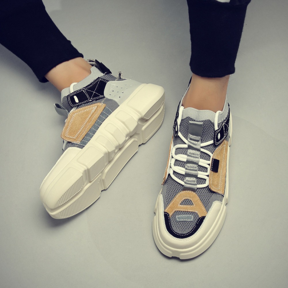 Men's Leather Shoes High-Top Sports Casual Sneakers