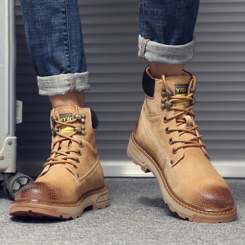 Men's Shoes Autumn and Winter New High-Top Boots Trend Tooling Military Boots British Martin Boots Men's Trendy Mid-Top