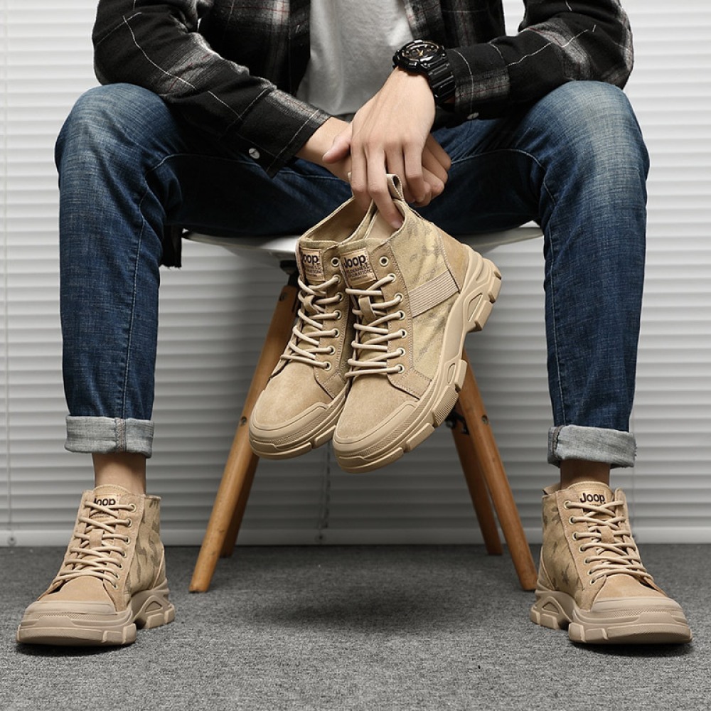 Men's Shoes Autumn and Winter New High-Top Boots Trend Tooling Military Boots British Martin Boots Men's Trendy Mid-Top
